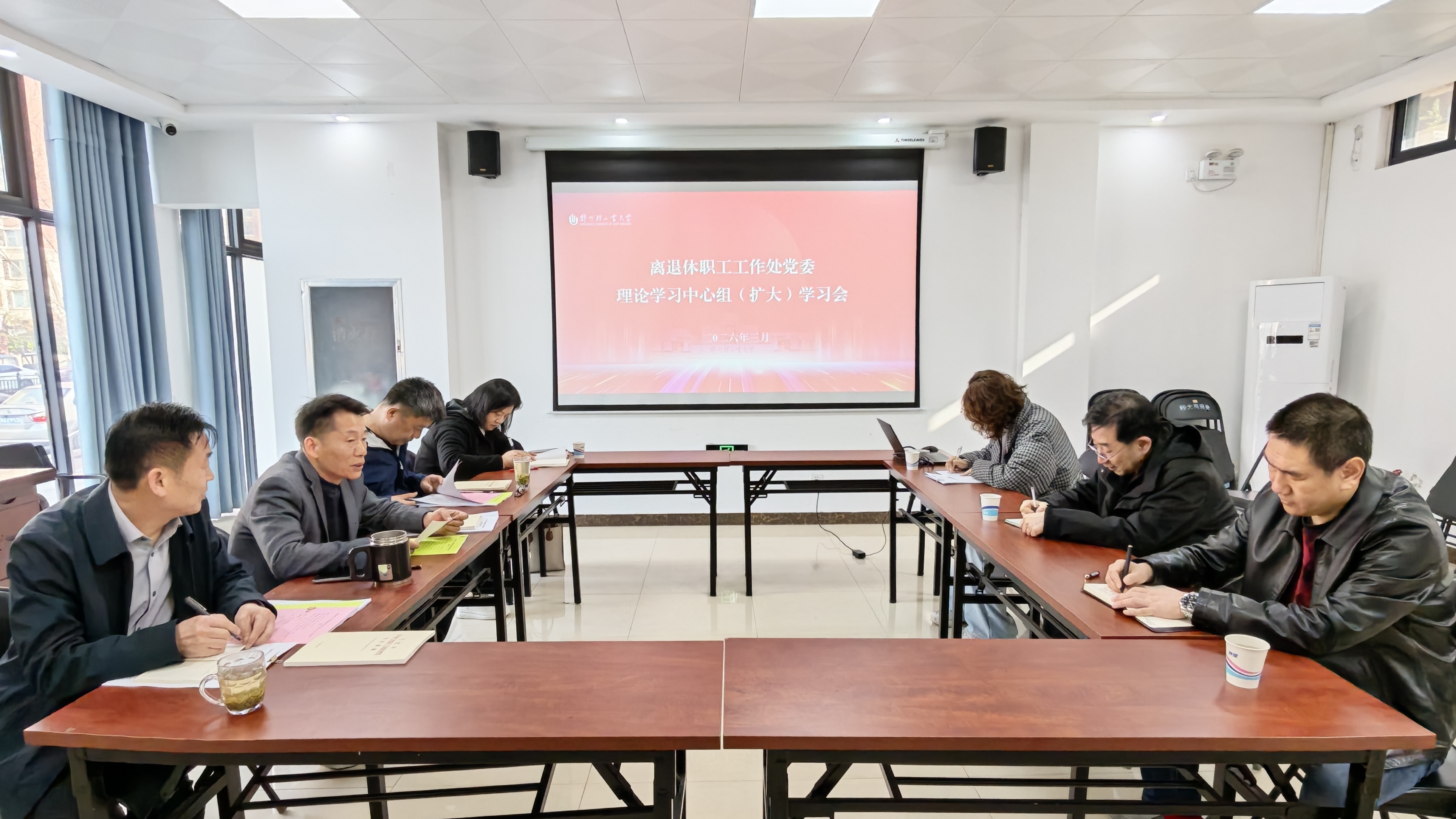 3月25日上午,离退休职工工作处党委召开理论学习中心组(扩大)学习会。处领导班子成员、全体科长参加会议。会议由处党委书记陈章美主持。