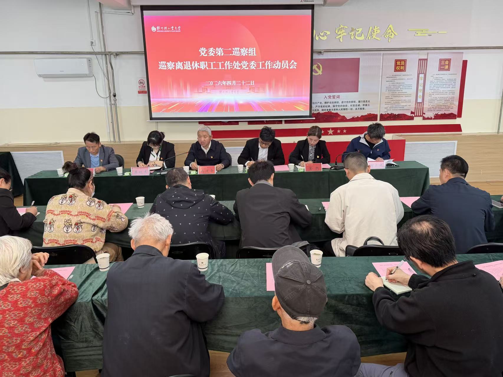 党委第二巡察组组长高建奇作动员讲话,就做好此次巡察工作提出要求。一要凝聚共识,正确认识开展巡察工作的重要意义。巡察工作是推动全面从严治党向基层延伸的重要举措,是优化基层治理、推动改革发展的现实需要。二要明确要求,把握巡察工作的形式和内容。坚持政治巡察定位,紧扣“四个聚焦”,突出问题导向,真找问题、找真问题。三要同题共答,高质量完成巡察工作任务。巡察组将与离退休职工工作处党委协同配合,做到同向发力、同频共振、同题共答,确保巡察工作取得实效。